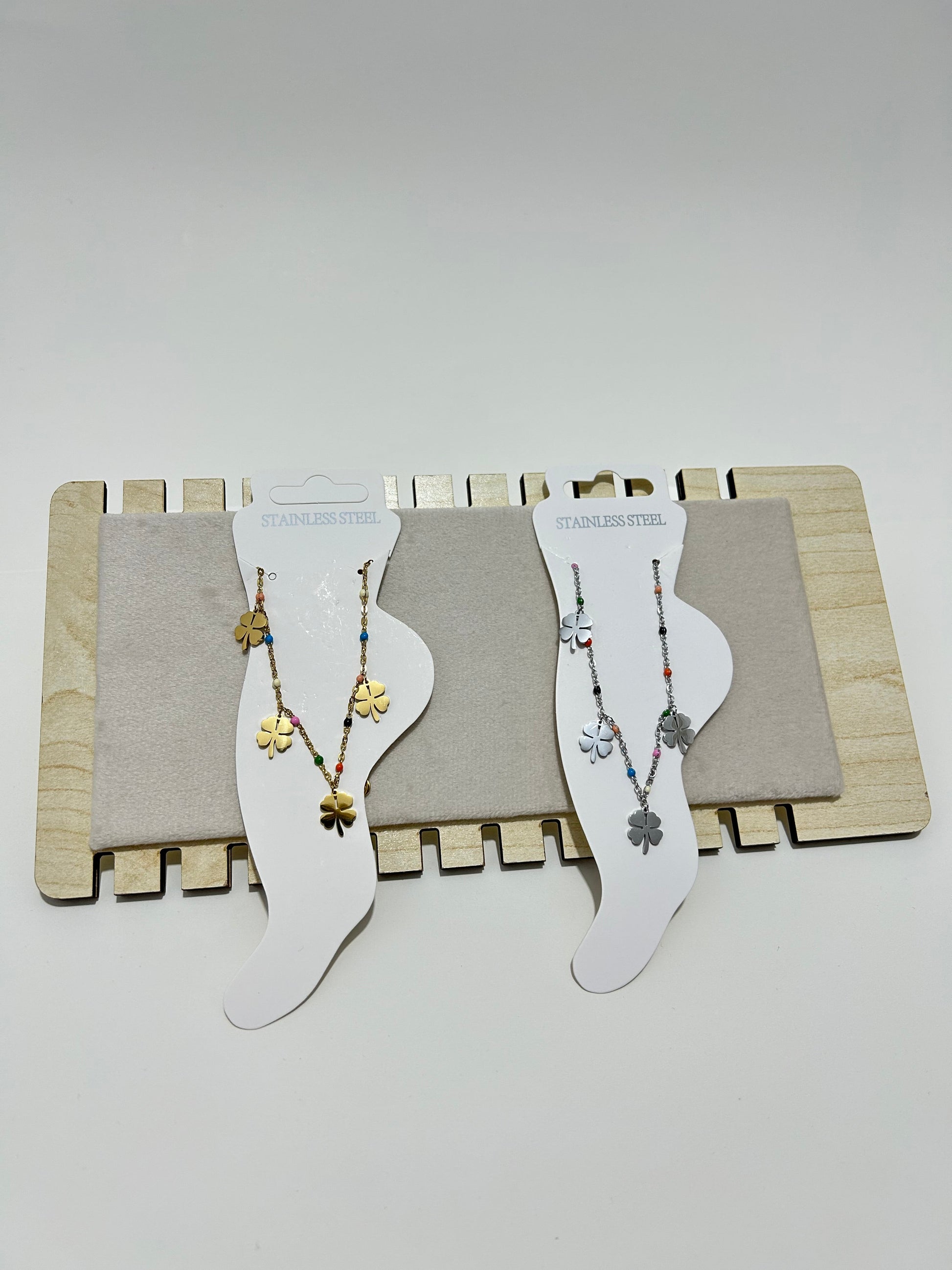 Dört Yapraklı Yonca Figürlü Renkli Boncuklu Paslanmaz Çelik Halhal – Altın & Gümüş Renk